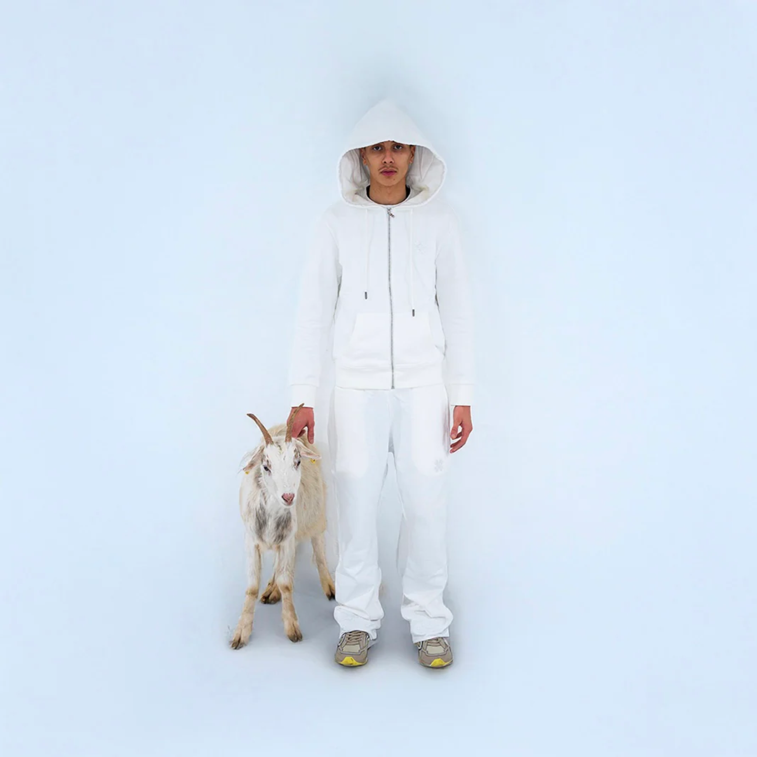 Immergiti nel mondo distintivo di TOROM con i pantaloni da jogging “GOAT Bianco”. Il design essenziale, impreziosito dai loghi a forma di trifoglio, è sinonimo di eleganza contemporanea: un capo comodo e alla moda che esprime la tua personalità.