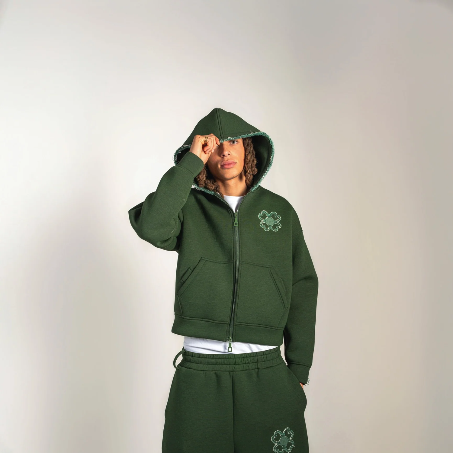 Il taglio oversize, gli iconici trifogli e le finiture precise la rendono un capo moderno e raffinato, perfetto per apparire con uno stile disinvolto.